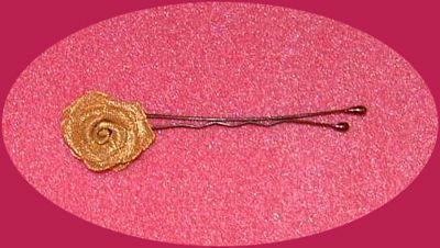 Gold Rose (1cm) "Made of Fabric" woven onto a Hair Clip/Pin.