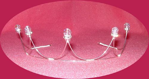 Shona Tiara is a Silver Half Crown with AB Crystals and Diamante Rondeles set on a Silver base (see BEATRICE in Plain Gold Tiaras for a Gold variation). Height 4cm.